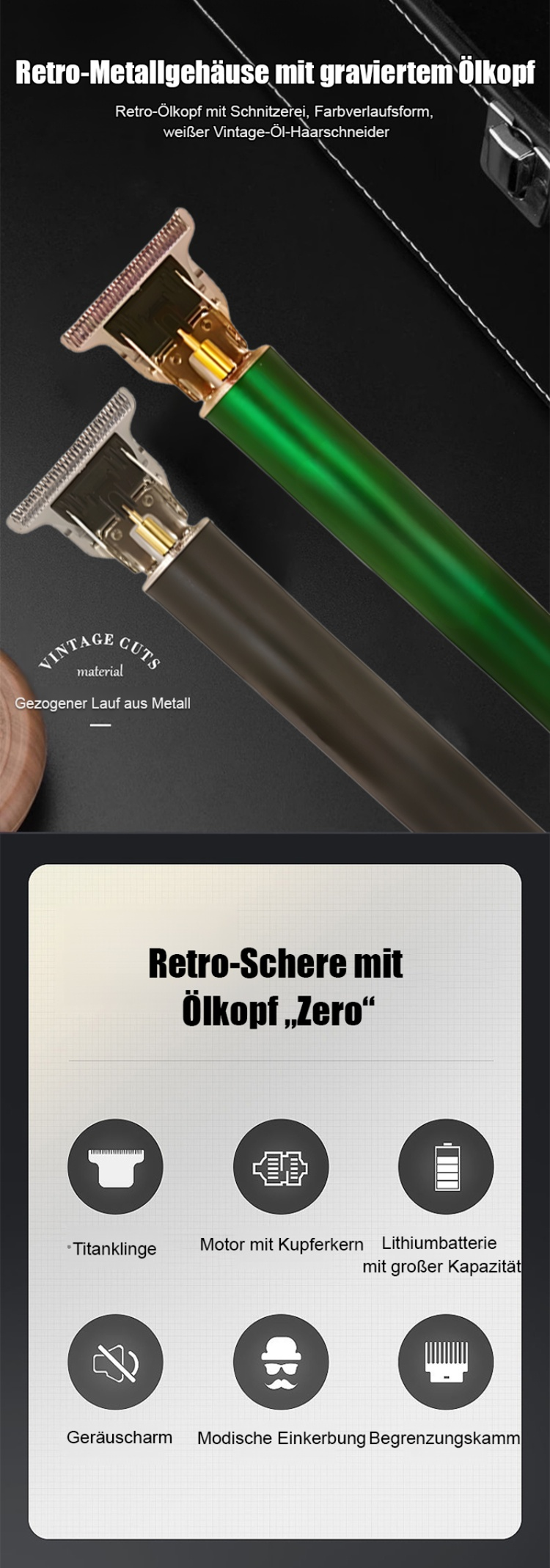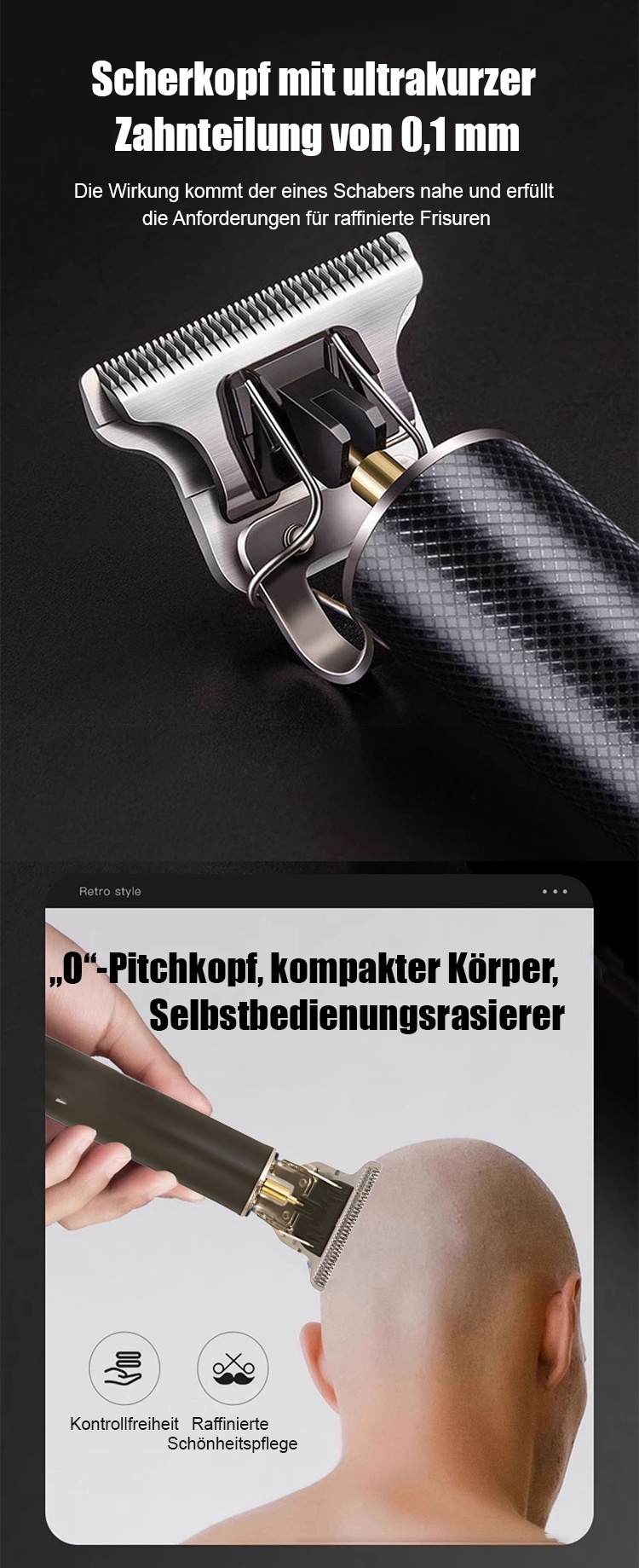 【Geräuschlos und ohne Hängen】Elektrischer Haarschneider für Ölkopf & Gravur