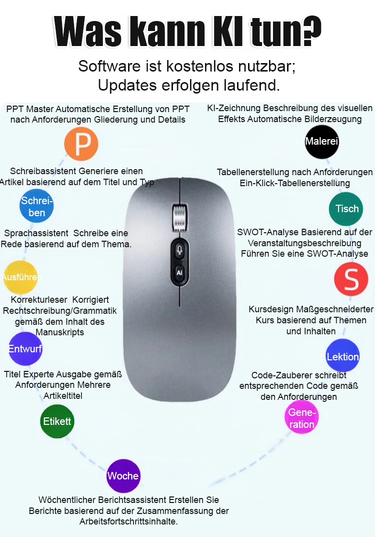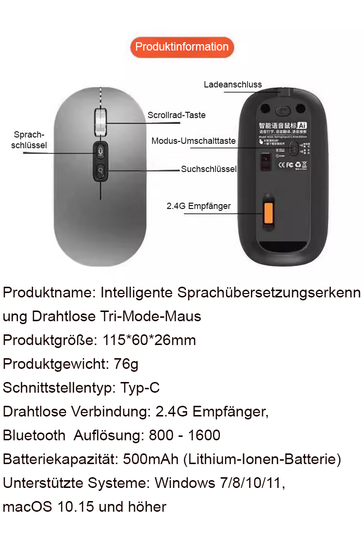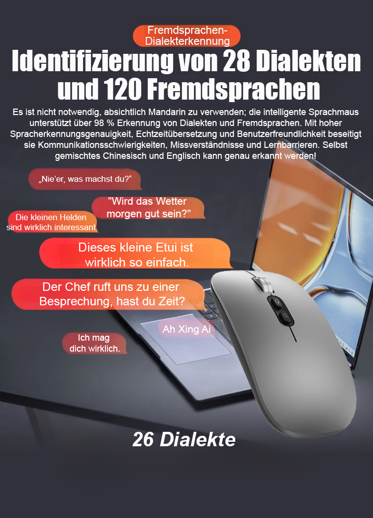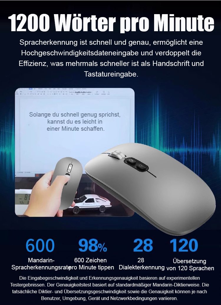 [Interoperabilität mit 120 Sprachen] Intelligente kabellose Sprachmaus